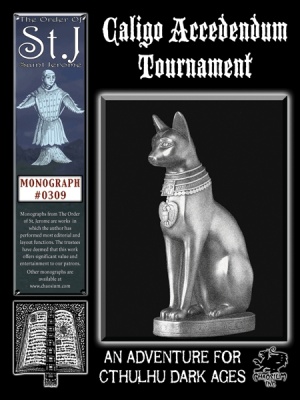 This monograph constitutes Chaosium's first GenCon tournament for Cthulhu Dark Ages. The staffers chose the Latin name, which translates to "the approaching darkness". It also makes for a nifty acronym that fits in well with the Lovecraft Mythos.