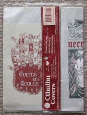 The three book covers included are for: Necronomicon (John Dee translation), Cultes des Goules, De Vermiis Mysteriis.