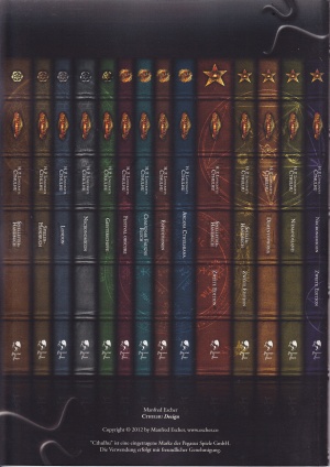 The cover of the book shows the spine design of the German Cthulhu books. Manfred Escher also produced a wallpaper of that picture which he made available after the release of this book through his website. Fortunately, the artist gave permission to host this wallpaper in this wiki.
