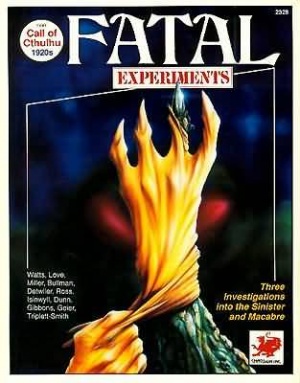 Fatal Experiments is a collection of three independent 1920s adventures for the Call of Cthulhu roleplaying game. Two of the three scenarios are suitable for both beginning and experienced players, making this book a perfect companion for first-time buyers of the Call of Cthulhu game system. The remaining adventure is unusually dangerous -- to be played only by experienced, foolhardy investigators.