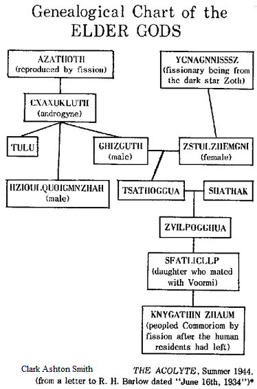 A genealogical chart created by Clark Ashton Smith for R.H. Barlow.