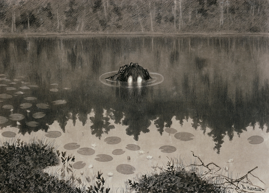 Illustrasjon for "Troldskab", Kristiania 1892, "Nøkken" (Water Troll)