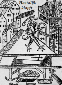 Woodcut: "Hastalÿk Knocks..."
