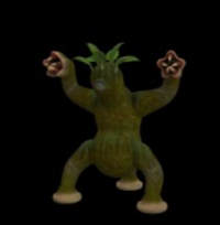 Plant Men from the polar crater valley Dor are strange creatures between 10 and 12 feet in height, similar in form to humans, with a head and face that are featureless except for a single white eye and a "nose like an open wound", tantacled arms that end in sucking mouths full of grasping talons and needle-sharp teeth used to feed on tender vegetation or blood sucked from living animal and humanoid victims, a body covered in shaggy black tendrils or "hair" resembling earth-worms, and a tail that tapers from a round profile to a flat blade shape at the tip. These strange creatures are herded and controlled by cannibal Therns as a trap for those unfortunate travelers the Therns trick into journeying into the Martian valley Dor: after the Plant Men have drained victims of their blood, the corpses are gathered and butchered as meat for the tables of the Therns.