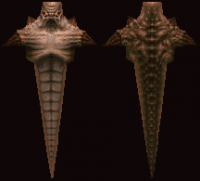 Scrags are a hideously ancient and wise race, possessing cunning beyond the lofty standard set by the other monsters in Quake; they are stealthy creatures which hide in the shadows high above the ground in their bizarre, secret Library-city of Sheol in the Inner World, said to be a place of darkness beneath the earth to which all the dead go, both the righteous and the unrighteous, regardless of the moral choices made in life, a place of stillness and darkness cut off from life and from light. Thanks to their powers of levitation, teleportation, and invisibility, Scrags typically remain unseen by those unfortunate visitors who find their way to Sheol, the Scrag cultists silently watching from above until they choose to give themselves away with the sibilant warnings of their sentries to their fellows of the presence of unwanted guests, or the hissed Aklo curses of the magical spells they have been known to cast upon intrusive meddlers in their secret world.