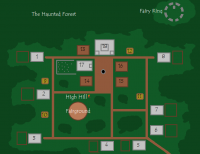 - Rumors of strange disturbances center around the "Haunted Forest" and the "Fairy Ring" (an eerie circle of ancient oaks and giant toadstools) and mysterious ruined tower said to be found somewhere deep within the forest.