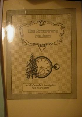 What is now being made available courtesy of Paul and Yog-Sothoth.com are revised versions of the three investigations originally published by ADP Systems. Some of the revisions are minor and some are more significant: after all, I've had over 15 years to tinker with them. Whatever the results, I hope that they provide some pleasure for anyone who wants to download them. If anyone wants to discuss anything regarding them, please feel free to contact me through MiskatonicTony at Yog-Sothoth and I'll do my best to reply promptly."