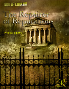 The Repairer of Reputations is a Trail of Cthulhu scenario by Robin D Laws, based on the story of the same name by Robert W. Chambers. It is one of four short horror stories incorporating Chambers’ mythology of The King In Yellow, a decadent play whose publication brings madness and supernatural presences into the world. His mythology was later subsumed into the Cthulhu canon when H. P. Lovecraft, and his circle and later followers, made reference to it in their tales of the mythos.
