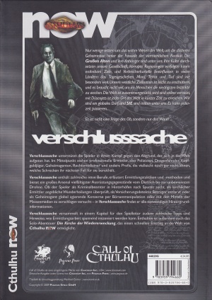 Verschlusssache versammelt in einem Kapitel für den Spielleiter zudem zahlreiche Tipps und Hinweise, wie Ermittlungsarbeit spannend inszeniert werden kann. Enthalten ist auch das Solo- Abenteuer Die Kirche der Wiedererweckung, das einen schnellen Einstieg in die Welt von Cthulhu Now ermöglicht
