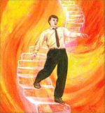 A huge stairway leading enticingly down seventy stone steps, at the bottom of which is the Cavern of Flame.