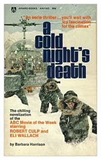 | − | [[File:A-cold-nights-death-1973.jpg|thumb|200px|right| | + | [[File:A-cold-nights-death-1973.jpg|thumb|200px|right|Front cover of the novelization of ''A Cold Night's Death (1973 film)''...]] |